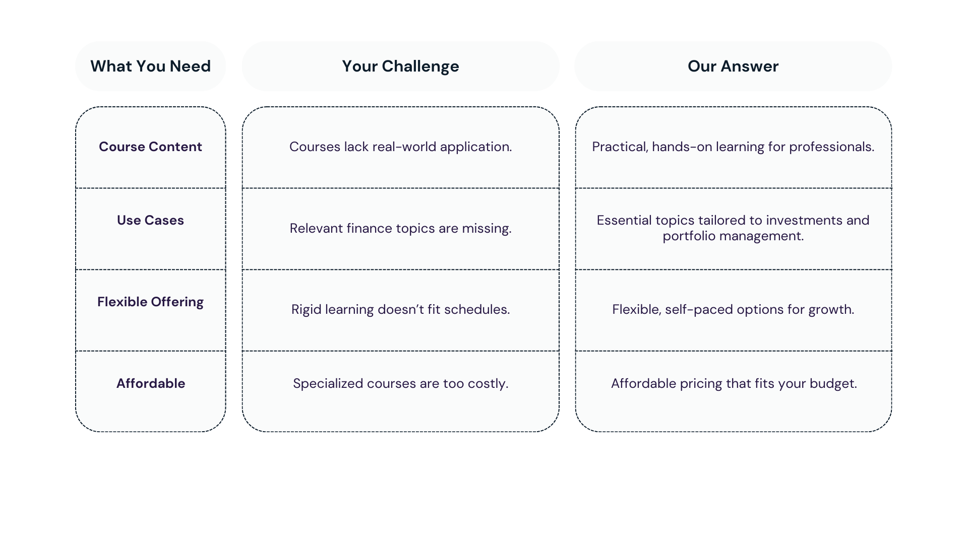 Solve the problems other courses ignore